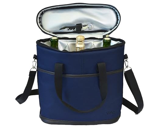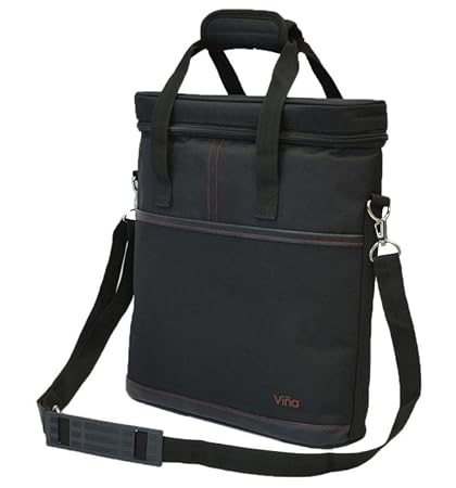 - √ Portable: With a hand tote strap and shoulder strap for easy carrying. Durable zippers. Front storage pocket. Corkscrew holder at top the bag with a free corkscrew.