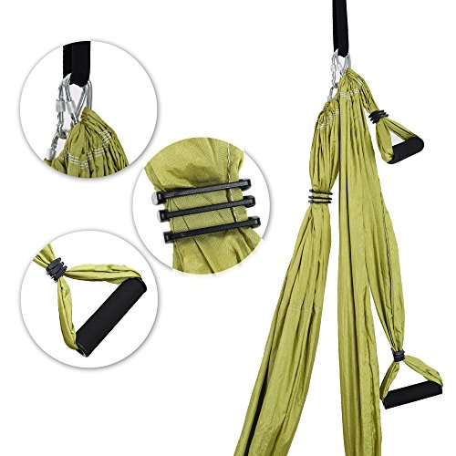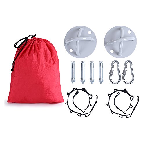 Installation?steps: 1.?Installing?mounts?on?the?ceiling.?You?should?make?sure?the?distance?between?two?mounts?is?about?19in*31in(50cm-80cm).?This?is?perfect?distance?for?aerial?yoga?swing. 2.?The?extension?straps?is?used?when?the?ceiling?is?higher.?Setup?straps?with?mounts. 3.?The?carabiners?should be?hooked?at?both?end?of?anti -gravity?yoga?trapeze?to?the?end?of?extension?straps.