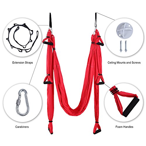 Package?includes: 1?yoga?trapeze 6?foam?handles 2 extension?straps 6?carabiners 2?mounts 4?screws 1?storage?cloth?bag