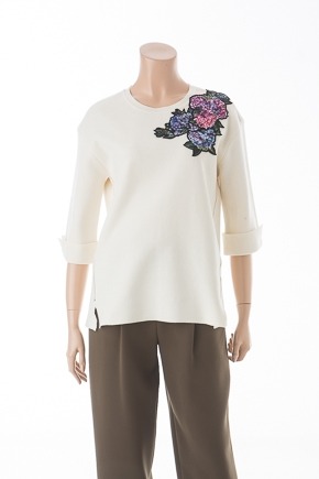 하이드렌pt 모티브를 패치한 풀오버. 팬츠나 스커트와 경쾌하게 코디 가능.