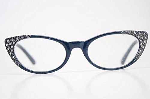 -. Title : Rhinestone Cat Eye Womens Reading Glasses in Black, Blue, Red and Purple (Carrying Case Included)