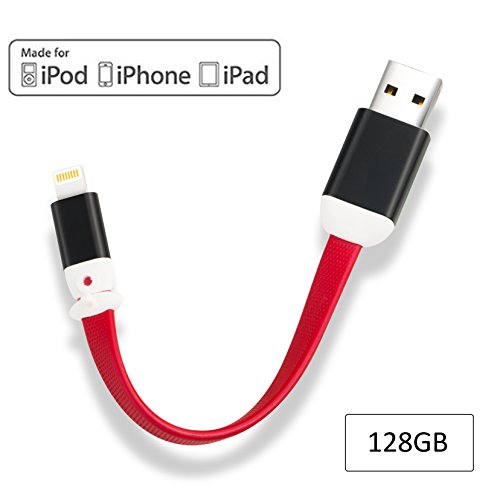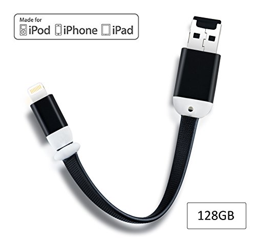 2 in 1 iOS Flash Drive 128GB USB memory stick and charging cable for iPhone and iPad (128GB SD Card Included)