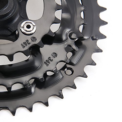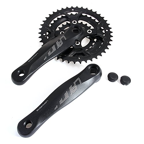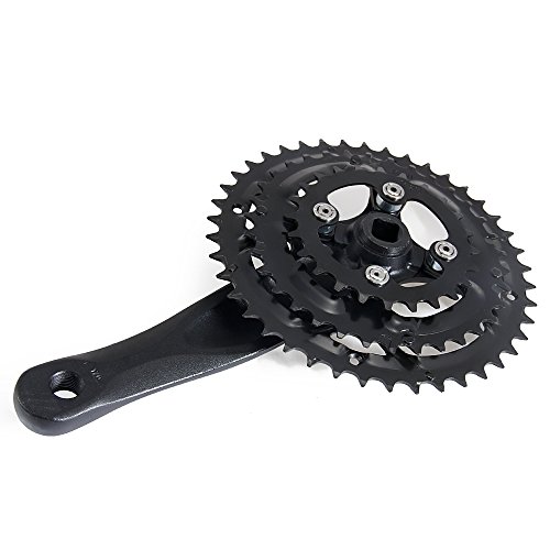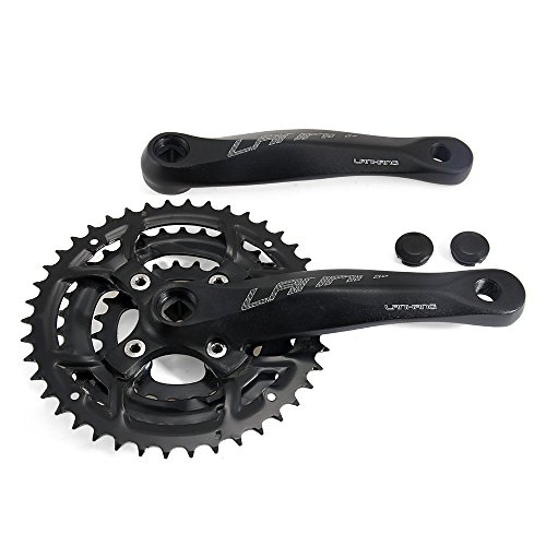 Product DescriptionDescription:Material: AluminumColor: BlackTeeth: 24-34-42TTooth disc diameter: 170mmOverall Length: 275mmCrank: aluminum one 170MMAxis: length 110MM-113MM square hole axis (22-68-20.5R)Features: removable aluminum cranksetPCD: 64MMSPEED: 8 / 7SPackage included:MTB crankset * 1Crank * 10
