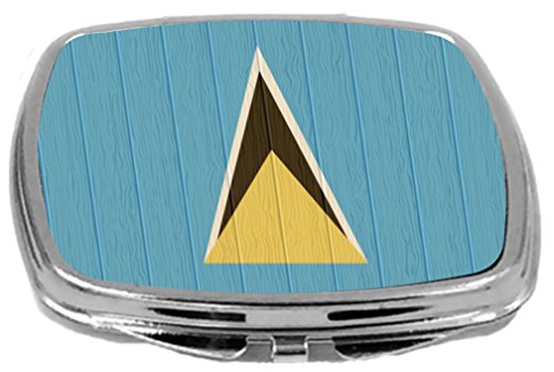 Rikki Knight Compact Mirror on Distressed Wood Design, Saint Lucia Flag, 3 Ounce