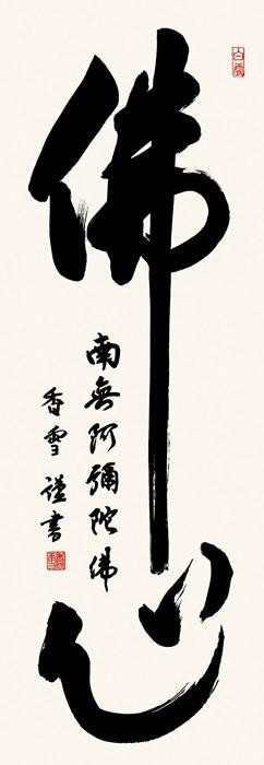 一心に書き記した鮮やかな墨痕。六字名号をしたためた浄土真宗系におすすめの、阿弥陀如来の慈愛が滲み出る作品です。