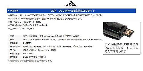 원본상품명: GIZA PRODACTS (ギザプロダクツ) CG-214W USB充電式LEDライト ブラック LPF15800