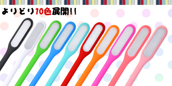 灯りが必要な際、USBポートに差し込むだけで利用可能。 USB接続で電力を供給するから電池充電や交換作業も不要です。 フレキシブルタイプで角度調節も自在なのでピンポイントで光の照射ができます。 カラーは多色展開。好みやシーンに合わせてお選び頂けます。 |