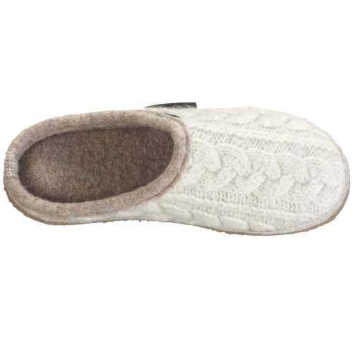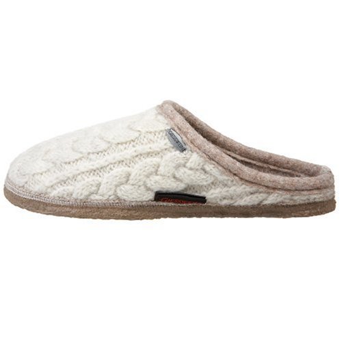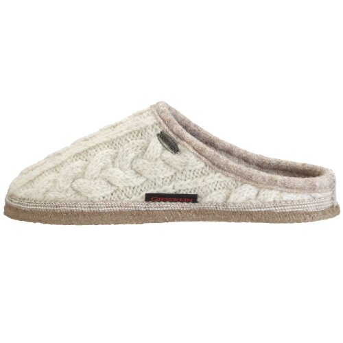 Amazon.com Giesswein's Neudau slipper gets down to the serious business of comfort. It features a flexible latex outsole and a cable-knit upper made of 100% wool that's naturally insulating, moisture-wicking, soil-resistant, and durable. 0