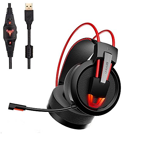 -. Feature : 7.1 surround sound: Experience an immersive 360-degree sound field that lets you hear what you can't see and acoustic positioning precision / 40mm high definition neodyminm magnet driver deliver high quality sound with dynamic trebble and powerful bass. / The mic of the headphones is highly sensitive,clear and durable. / Cool look with Glaring LED lights designed on the earcups, highlighting the active atmosphere of the gaming. / Easy to control and adjust with In-line sound controls, Volume dial and mute swicth; Compatible with Windows 10,Windows 8, Windows 7 or Windows Vista computers.