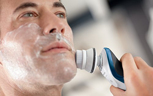 -. Feature : Philips Nr. 1 für sensible Haut: hautschonend dank Mikrokügelchen-Beschichtung für eine sanfte Rasur. / GentlePrecision Scherköpfe: das spezielle Design des Schersystems schont die Haut und erfasst gleichzeitig sehr lange, kurze und flach anliegende Haare. / 5-Direction DynamicFlex Heads: Anpassung des Scherkopfes in 5 Richtungen für eine gründliche, schnelle Rasur selbst an Kinn- und Hals. / Aquatec Wet & Dry-Versiegelung ermöglicht eine gründliche Trocken- oder hautschonende Nassrasur mit Gel oder Schaum, auch unter der Dusche. / Lieferumfang: Rasierer, aufsteckbarer Bartstyler und Gesichtsreinigungsbürste, Etui. Farbe: weiß-dunkelblau