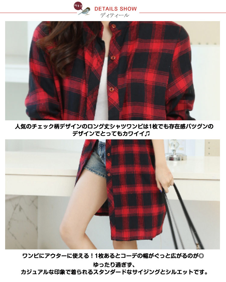 | チェック柄でスタイリングのしやすさと大人っぽい雰囲気がポイントのロングシャツ。羽織としても人気の今年マストアイテムのロングシャツ。動きやすさとこなれた印象を演出してくれるゆったりデザイン。ボトムのシルエットを選ばず、ショートパンツ?ワイドパンツまで幅広く対応できるアイテムです。 | |