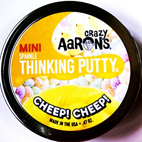 -. Binding : Toy -. Brand : Crazy Aaron's -. EAN : 0802870035799 -. Feature : Limited Edition for Easter 2017 / Includes 1 small 2" tin of Cheep! Cheep! Sparkle putty. Tin is .47ounces / Made in the USA of non-toxic silicone, never dries out & is easily removed from solid surfaces / Gluten free, latex free and amazing for special needs, party favors & much more! / For Ages 3 and up - Fun for the whole family! - Makes a great gift! -. IsAdultProduct : 0 -. ItemPartNumber : CE003 -. Label : Crazy Aaron's -. Manufacturer : Crazy Aaron's -. ProductGroup : Toy -. ProductTypeName : TOYS_AND_GAMES -. Publisher : Crazy Aaron's -. Studio : Crazy Aaron's -. Title : Easter Cheep! Cheep! Sparkle small 2" tin 0.47ounces Crazy Aaron's Thinking Putty For Ages 3+ -. UPC : 802870035799