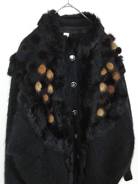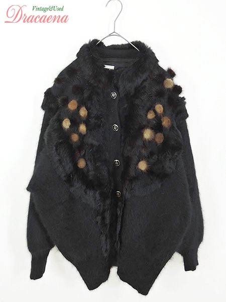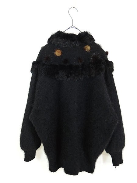 Ladies ブランド カラー黒 メール便不可 コンディション★★★ 素材モヘア・アンゴラファーだと思われます 表記サイズXXL 実寸サイズ 着丈 72 cm 身幅 62 cm 袖丈 69 cm ラグラン袖の為、襟元から袖先までの計測 ※ウエスト・ヒップ以外は平置き採寸【code】#e