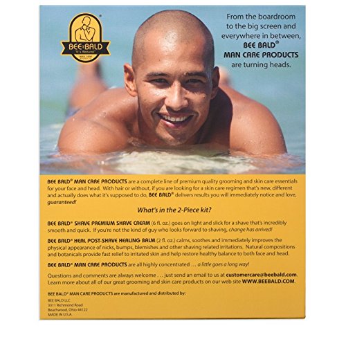 Studio : Bee Bald LLC Publisher : Bee Bald LLC Binding : Health and Beauty Product Description For guys (and gals too!) that don't want to spend too much time getting ready, this 2 Piece Kit is perfect for you! SHAVE and HEAL, that's all there is to it . . . SHAVE goes on light and slick for a premium quality shave that's incredibly smooth and quick; HEAL soothes the skin afterwards so you're off and running with no time to waste! A perfect starter set and a great gift for loved ones. 0