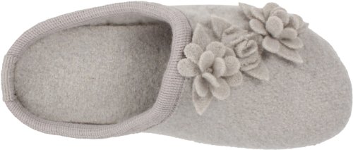 -. Feature : Wool slipper featuring dimensional floral applique and ribbed trim at entry