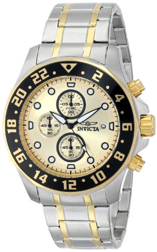 -. Binding : Watch -. Brand : Invicta -. Color : Silver/Gold/Black -. Department : mens -. EAN : 0886678196586 -. Feature : Japanese quartz movement / Flame fusion crystal; stainless steel case and bracelet with 18Kgold ion-plated stainless steel inserts / Chronograph functions with 60 second, 60 minute and 1/10th of a second subdials; date window at 3:00 / Champagne dial with black and white hands and hour markers; luminous; 18Kgold ion-plated stainless steel bezel with black top ring; 18Kgold ion-plated stainless steel crown and pushers / Water resistant to 165 feet (50 M): suitable for swimming and showering -. Label : Invicta -. Manufacturer : Invicta -. Model : 15940 -. MPN : 15940 -. PackageQuantity : 1 -. PartNumber : 15940 -. ProductGroup : Watch -. ProductTypeName : WATCH -. Publisher : Invicta -. ReleaseDate : 2014-02-12 -. Size : Standard -. Studio : Invicta -. Title : Invicta Men's 15940 Specialty Analog Display Japanese Quartz Two Tone Watch -. UPC : 886678196586