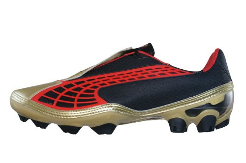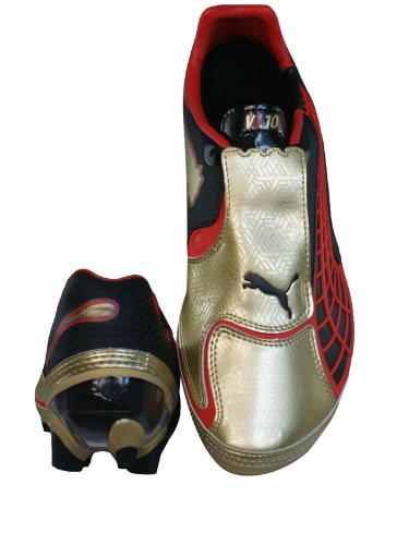 Binding : Apparel Product Description NEW PUMA V1.10 i FG MENS FOOTBALL BOOTS / CLEATS Introducing the 3rd Generation of the v1 series, the v1.10 - A fusion of speed and low weight The v1.10 has an updated, softer toe area designed to give a better touch of the ball One of the new designs for the v1.10 is the introduction of the lace cover to provide a clean kicking area and greater ball to contact area The fit of the boot has been greatly improved to help give a more comfortable and higher quality fit The upper is made up of a New, lightweight material mix, combining textile with a soft, highlighy abrasion-resistant microfiber The introduction of a carbon fibre plate over the forefoot reduces stud pressure whilst the moulded blades ensure optimum traction across firm natural surfaces Boot bag included 0
