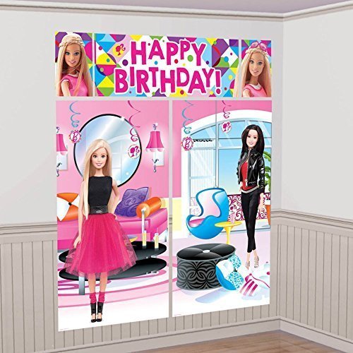 -. Title : Amscan Barbie Sparkle Scene Setters Wall Decorating Kit, Multicolored, 59" x 65"