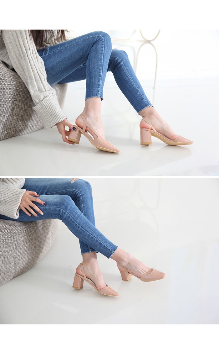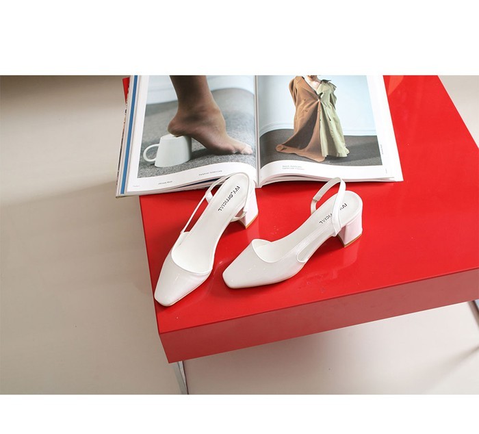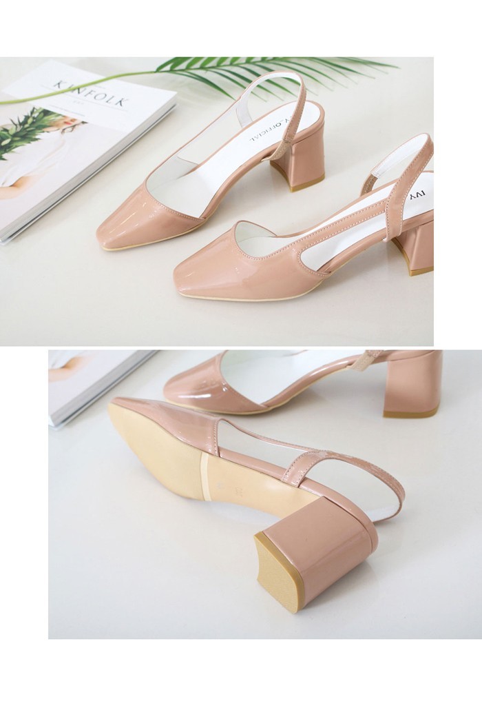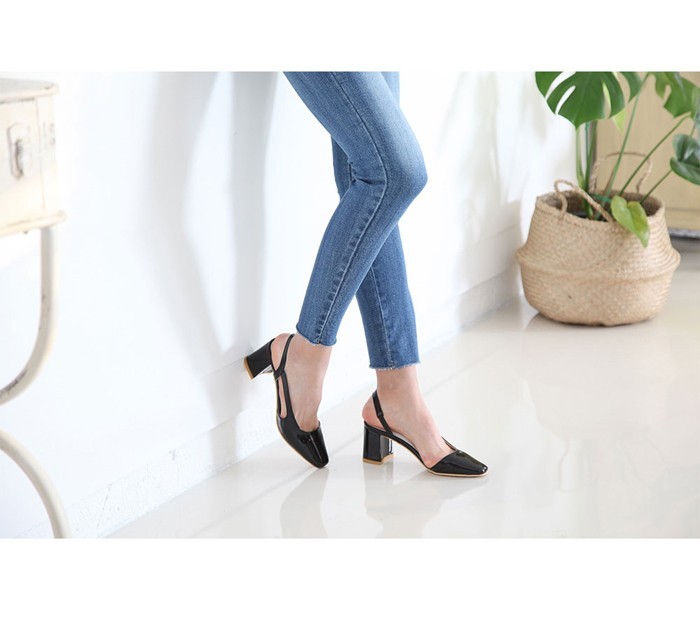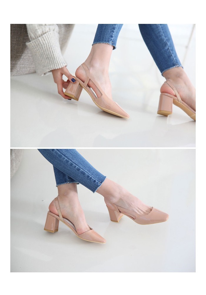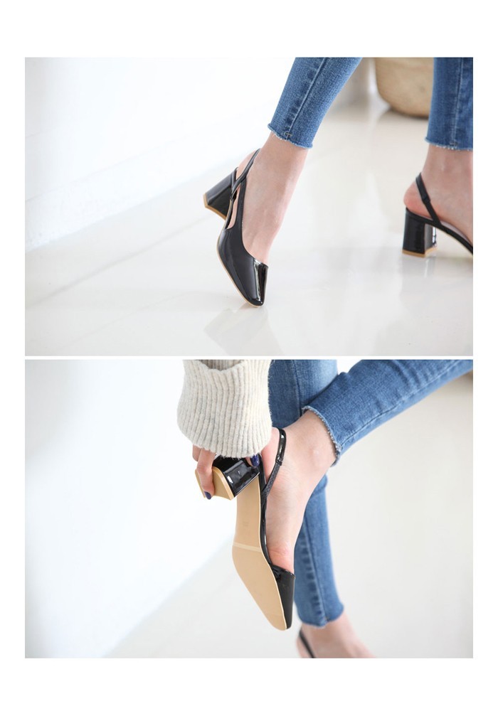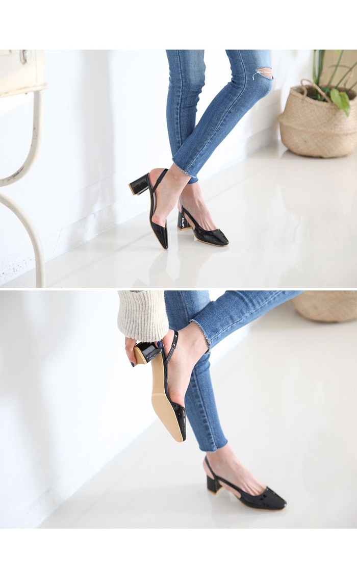商品名:パンプス レディース スリングバック 太ヒール チャンキーヒール エナメル調 2017 秋 冬 ファッション 靴 婦人靴