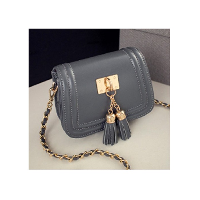 원본상품명: (ドレスタ) DRESSTAR タッセル ショルダバック チェンバック ポシェット ミニバック PUレザ (グレ)