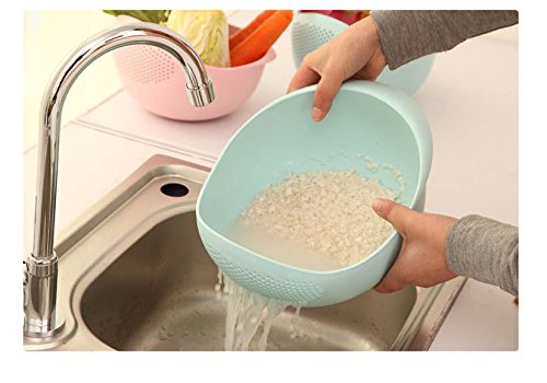 Rice Washer Strainer Colanders for Cleaning Vegetable, Fruit Container with Fine Mesh Colanders Sieve Bowl Kitchen