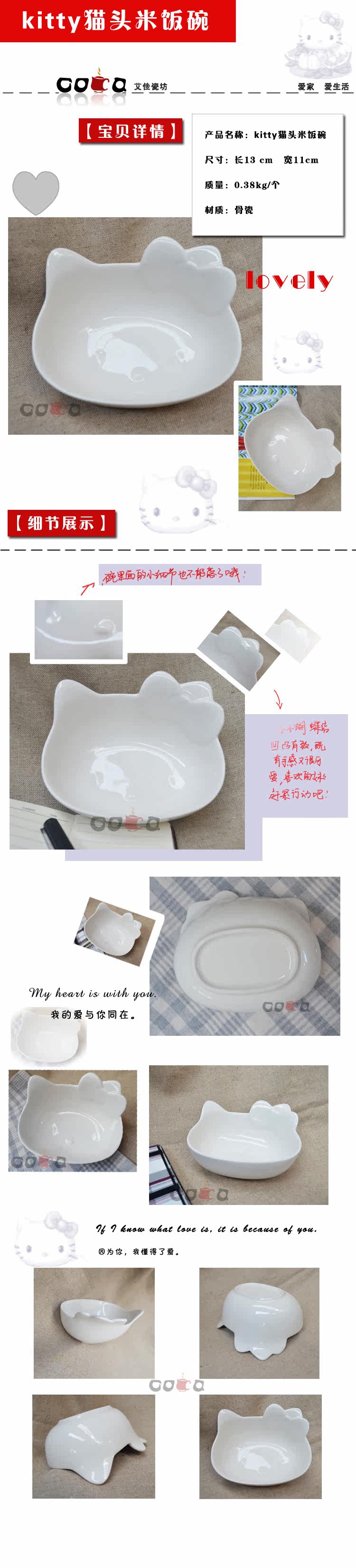 kitty碗纯白骨瓷日式碗陶瓷饭碗个性碗生日结婚乔迁礼物