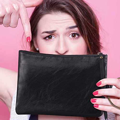 Spacious Interior :1 main zipper pouch with compartment ,1 side zipper pouch in main bag,It can easily hold your wallet, business cards, ID cards, cosmetics, keys, mobile phones, mirrors, notebooks, etc /
