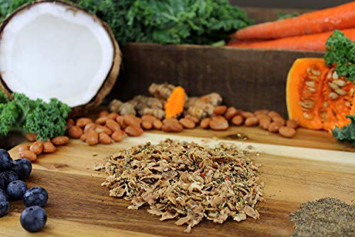 原材料:原材料:うずら豆、麻の実、ニンジン、ココナッツ、パンプキン、ケール、ブルーベリー、ターメリック、ビタミンA、ビタミンD3、ビタミンE、ナイアシン、キレート化鉄、炭酸カルシウム、リン、キレート化亜鉛、リボフラビン、硝酸チアミン、塩化カリウム、キレート化マンガン、キレート化銅、塩化マグネシウム、塩酸ピリドキシン、シアノコバラミン(ビタミンB12), 成分:粗タンパク質(最小)21%、粗脂肪(最小)11%、粗繊維(最大)5%、水分(最大)8.3%、カルシウム(最小)1%、リン(最小)0.8%、マグネシウム(最大)0.17%, カロリー:391.4kcal/100gあたり