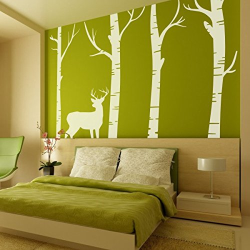 -. Title : Bedroom Birch Tree Wall Decal Forest with Deer Vinyl Sticker Living Room Wall Art Decoration