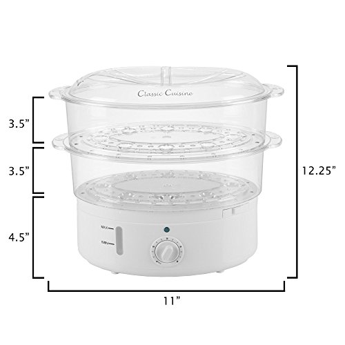 Create effortlessly delicious meals with steamed rice, veggies, eggs, fish and more with the Vegetable Steamer Rice Cooker by Classic Cuisine. The built-in timer ensures the perfect steam every time, while the two convenient baskets and stackable tiers allows users to steam two foods at once. This electric steamer makes it easy to give the entire family a vast variety of tasty and healthy meals everyone will appreciate!