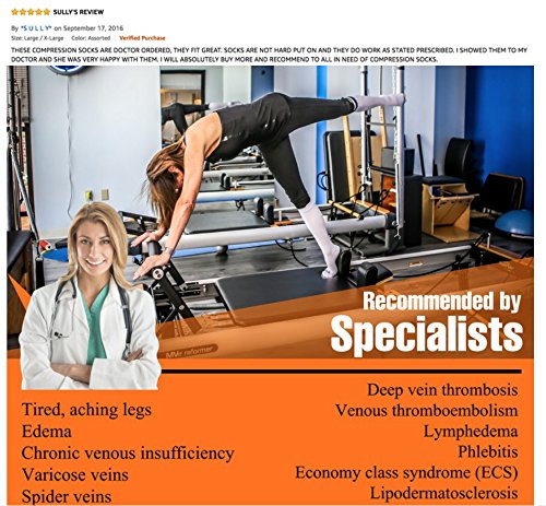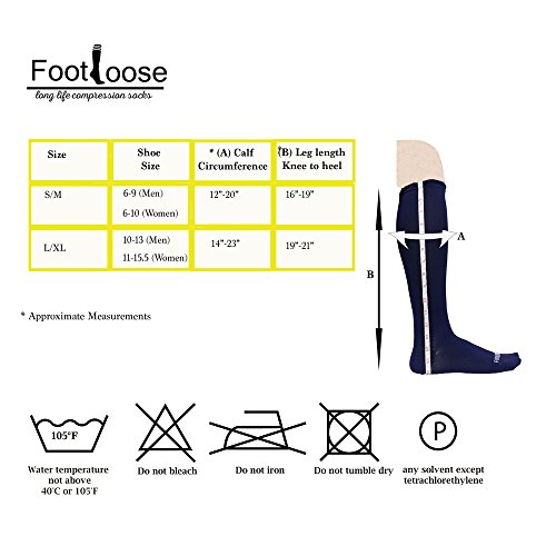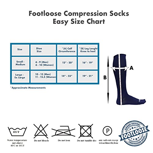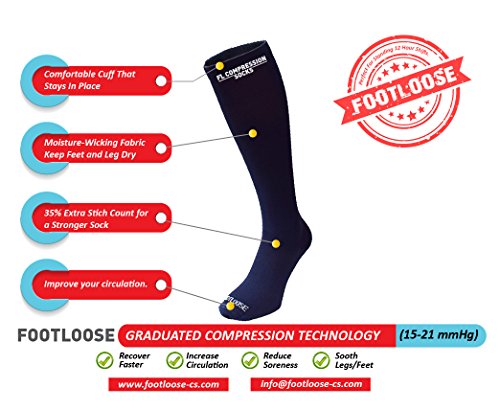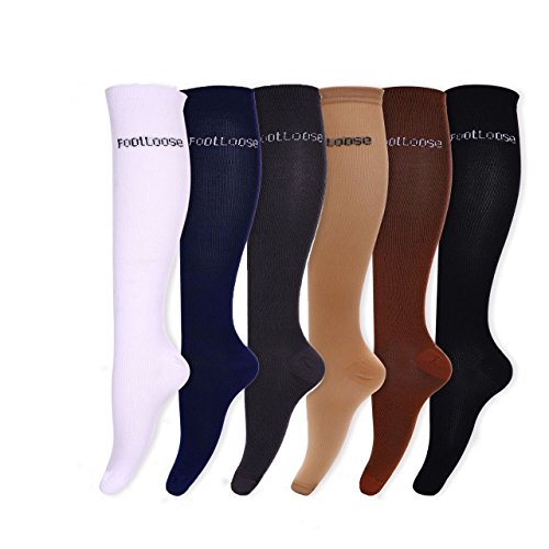 Why do so many people wear compression socks? If you've ever spent a long time on your feet or sitting on a long flight you've probably experienced unsightly leg swelling and the pain associated with it. Your body works hard to pump blood against gravity back to the heart. Circulation problems or lack of movement can result in blood pooling in the veins of the lower legs or feet which can lead to leg swelling, achiness and leg fatigue. Compression socks gently squeeze the leg tissues to help blood in the veins return to the heart improving comfort, reducing pain and tiredness. Many top athletes also choose to wear compression socks to improve performance and aid in recovery from tough workouts. At Footloose, we truly believe in the performance of ours socks and we think you will too. Here are some things you should know about our socks: * Our socks have a 30% higher stitch count compared to other manufacturers which results in a higher quality, more comfortable material next to your skin. * We use Nylon and Spandex to ensure the highest levels of comfort and performance while maintaining maximum levels of freedom and movement. * Our blended antibacterial material will keep your feet dry and fresh even through the toughest of days. * Footloose socks are incredibly affordable. * Many different people wear our socks: baseball and basketball players, nurses, frequent flyers (not just the passengers but pilots and cabin crew too), pregnant women, runners and walkers and many more. Each box contains 6 pairs of unisex compression socks in the following colors: Black, White, Beige, Dark Gray, Coffee, Navy Customer satisfaction is our #1 priority. Amazon buyers trust our Footloose brand to be Quality Premium Products. Original Footloose socks are only available from New City Products. 0 |