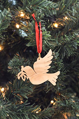 From The Earth - Olive Wood Peace Dove with Olive Branch Christmas Ornament - Fair Trade & Handmade