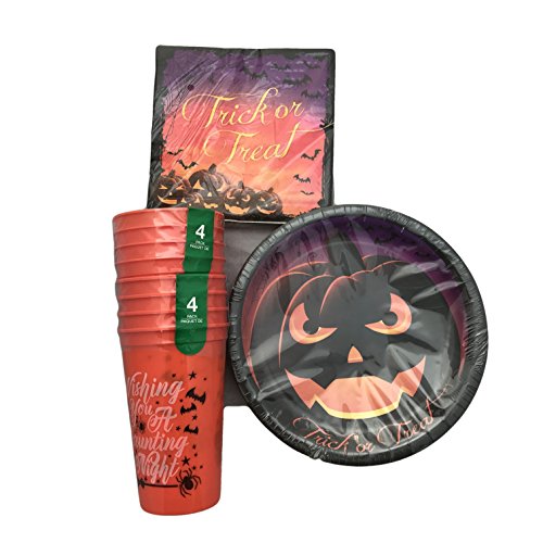 Creepy Pumpkin Party Pack Bundle with 18 Plates, 18 Napkins and 8 Plastic Tumblers