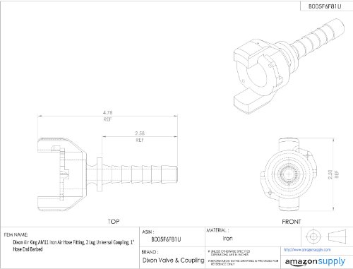 Dixon Air King AM11 Iron Air Hose Fitting, 2 Lug Universal Coupling, 1" Hose End Barbed