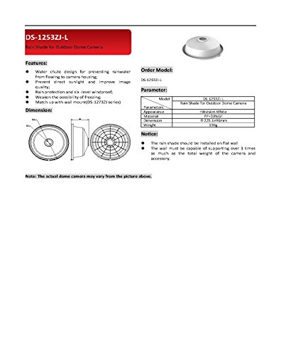 -. Feature : Outdoor rain shade with water chute design for preventing rainwater from flowing to camera housing / Prevents direct sunlight and improves image quality / Weakens the possibility of freezing / Compatible with DS-1273ZJ series wall mounts