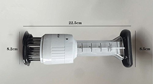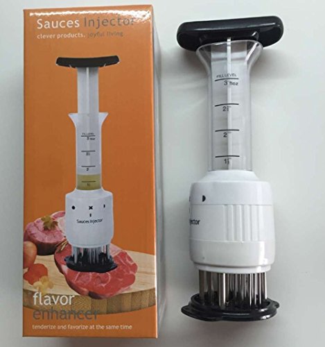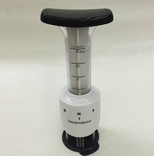 Description: Instructions 1.Pull out the plunger and pour marinade or sauce into the tube. Then put the plunger into the tube and press it. 2.You can also put the marinade in a container and suck the marinade from the container. The marinade or sauce will permeate into the meat when you tender it. How to clean You must use a gravy without a large fraction and the tenderer will work as it should. The marinator is supplied in a special lubricant. It is not harmful but must be washed before use. The needles through which the marinade is injected are turned inward, which allows it to be washed and not to stain everything around. For simplicity of washing it should be disassembled as in the figure and rinsed with warm water. Size(Approx):high22.5*bottom8.2*handle8.5CM Material: Stainless steel ABS 100% brand new with high quality Color:White Packing List: 1PC*sauces injector 0
