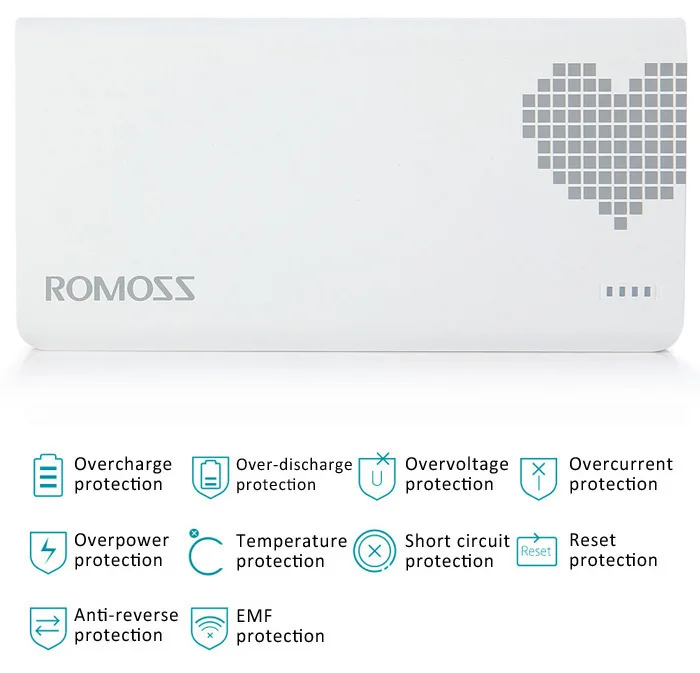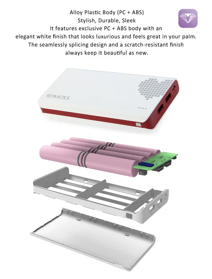 Original ROMOSS Sense 6 Upgraded Adequate 20000mAh Portable Dual USB Output Mobile Power Charger White must be the Cream of the Crop among thousands of products at the current market! Adopting high quality chip, our mobile power charger will effectively protect your device and guarantee long battery life. The large 20000mAh battery capacity could meet your daily demands perfectly. Also, it's perfectly designed with overcharge and overdischarge prevention as well as short circuit protection. A portable and handy assistant for all kinds of people on the go! No more hesitation!