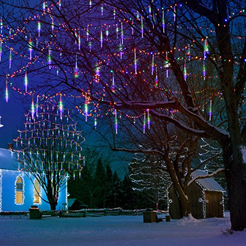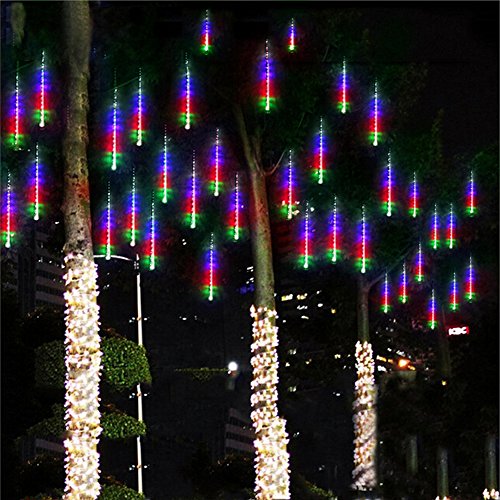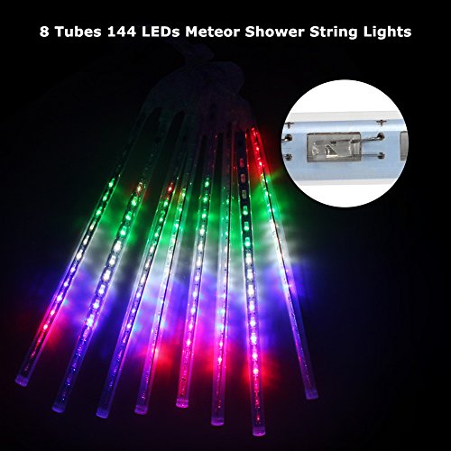 String Lights By LYlife,Waterproof LED Meteor Shower Rain Lights Falling Raindrop Fairy Lights With 30CM 8 Tubes 144 LEDs For Holiday Party Wedding Christmas Tree Decoration (30CM, Multicolor)