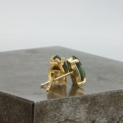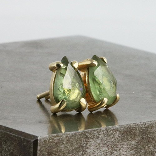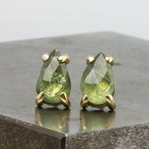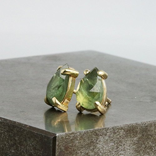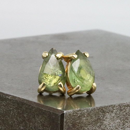 -. Title : Pear Stud Earrings with Green Sapphire - 14k Yellow Gold with 5mm x 8mm Natural Stone