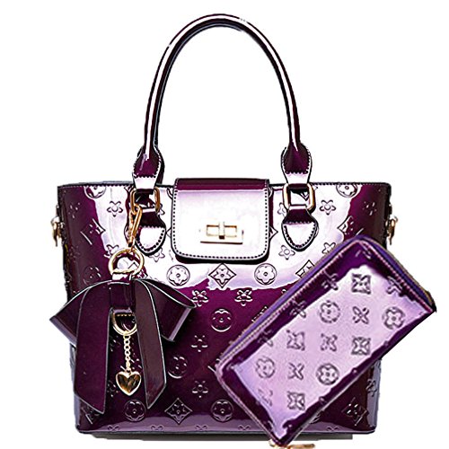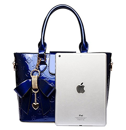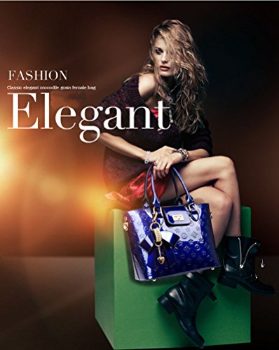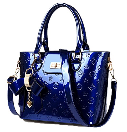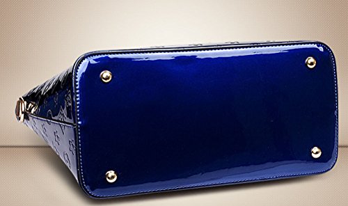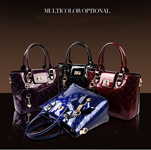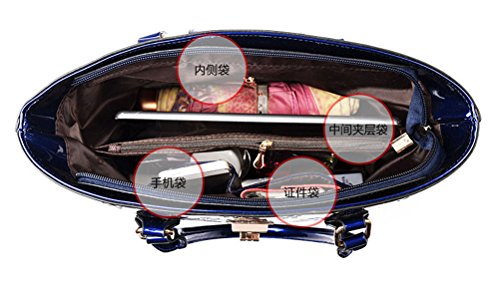 -. Feature : High quality shinny synthetic leather / Zipper Closure, inside zipper divider, wall zipper pocket and cell pocket / Shoulder handle drop: 6", extra shoulder strap / 12"L x 9"H x 5.5"D / Ship from US