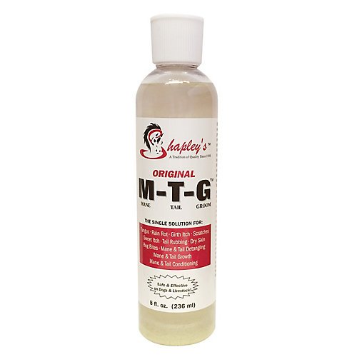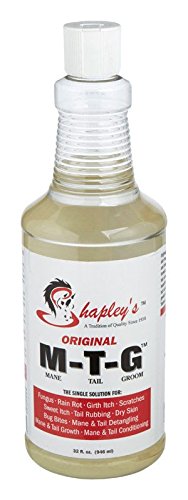 Studio : Shapley's Equine Grooming Products Publisher : Shapley's Equine Grooming Products Binding : Sports Product Description Shapley's Original M-T-G, recognized by Western Horseman as the Editor's Pick, is an easy to use, veterinarian recommended product providing quick and effective relief from a variety of bacterial and fungal skin problems such as: rain rot, scratches, girth itch, sweet itch, dry skin and tail/mane rubbing. It provides results, in many cases, after a single application. Original M-T-G creates a healthy environment for the hair follicle, producing maximum growth while keeping the length of the hair shaft soft and pliable for minimum breakage. In fact, users report up to 3 Inch of new growth on manes and tails in a single month. For 75 years, horsemen worldwide have known Original M-T-G as the single solution for both skin healing and hair growth. Original M-T-G is also safe and effective on dogs, small animals and livestock. 0