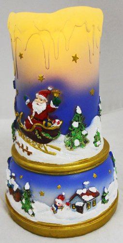 - Feature : Avon Flameless Pillar Candle with Santa Scene / Measures: 6.5" in height and 4.25" in diameter at base / Inside pillar are 3 LED lights that alternate intensity to produce a constant flicker / Has beautiful 3D Santa scene around pillar Candle and base / Requires 2 AA batteries - Not Included