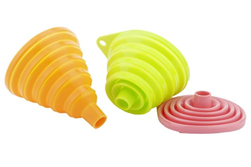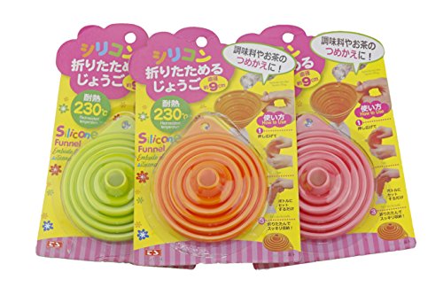 -. Title : Excelity Set of 3 Portable Flexible Collapsible Silicon Funnel - Green & Orange & Pink