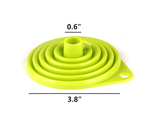-. Feature : Set of 3 funnel - Orange,Pink,Green / Different color can distinguish the difference usage / Easy to use and store / Portable,Convenient,Durable / Measured 3.8 inch diameter