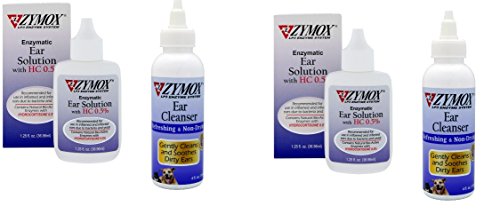 -. Binding : Misc. -. Brand : Zymox -. EAN : 0600166910436 -. Feature : Nontoxic way to clean and protect dirty ears / Doesn't contain harsh chemicals or cleaners to irritate sensitive ears / Contains Lacoperoxidase, Lactoferrin and Lysozyme, which have natural bio-active properties to gently clean non-infected ears / Leaves ears smelling fresh / Inhibits bacterial growth -. Label : Pet King Brands -. Manufacturer : Pet King Brands -. PackageQuantity : 1 -. ProductGroup : Pet Products -. ProductTypeName : PET_SUPPLIES -. Publisher : Pet King Brands -. Studio : Pet King Brands -. Title : Zymox Otic Dog Pet Cat Ear Treatment 1.25 oz and Ear Cleanser 4 oz - 2 Combo Packs -. UPC : 600166910436
