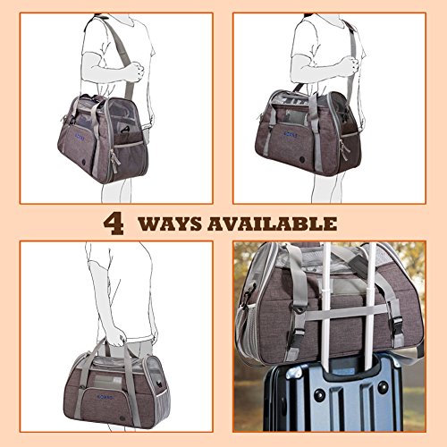Kindly Reminder: 1.Please never leave your pet unattended in parked car! 2. Please take the time to get your pet accustomed to the carrier prior to travel. 3.Please make your pet's carrier fit under the seat in front of you. 4.Please consider adding a favorite toy or treats to make it more comfortable and familiar. 5.Please measure your pet's size and weight first. Then check if the pet meet the carrier measurement and maximum weight limit. 0