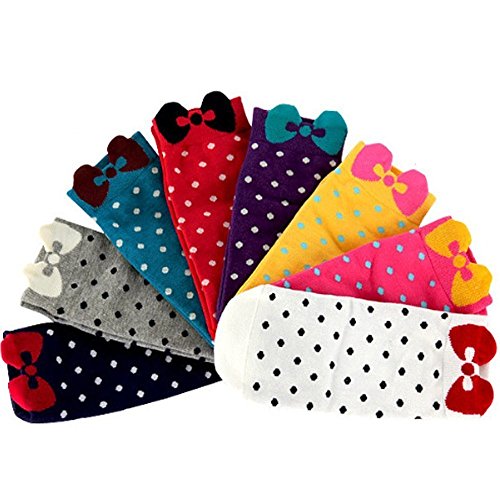 Sealike Korean Cute Bowknot Polka Dot Low Cut Socks for Women Girls in Bulk with a Stylus(8 Pcs)
