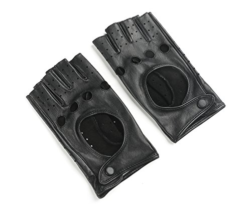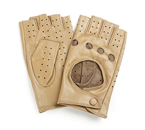 Ambesi Women's Classic 1/2 Finger Leather Driving Gloves