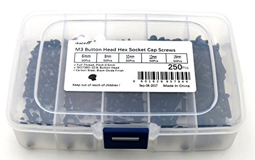 - Package: Total 250Pcs M3 Button Head Hex Socket Cap Screws