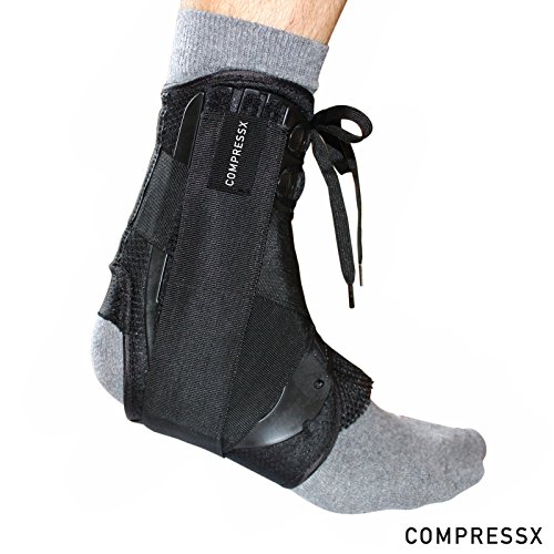 COMPRESSX Ankle Brace, Stabilizer Support- For Joint Pain, Athletic Injuries, Recovery, Sprains & More-Ankle Brace Lace Up Support With Adjustable...
